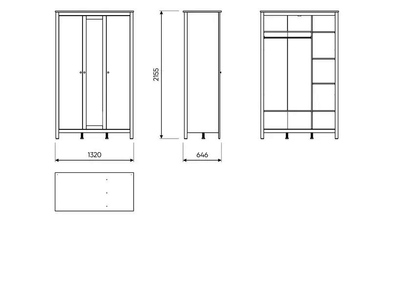 Шкаф в спальню Сага [2.08.01.040.16] 3-х дверный, с зеркалом