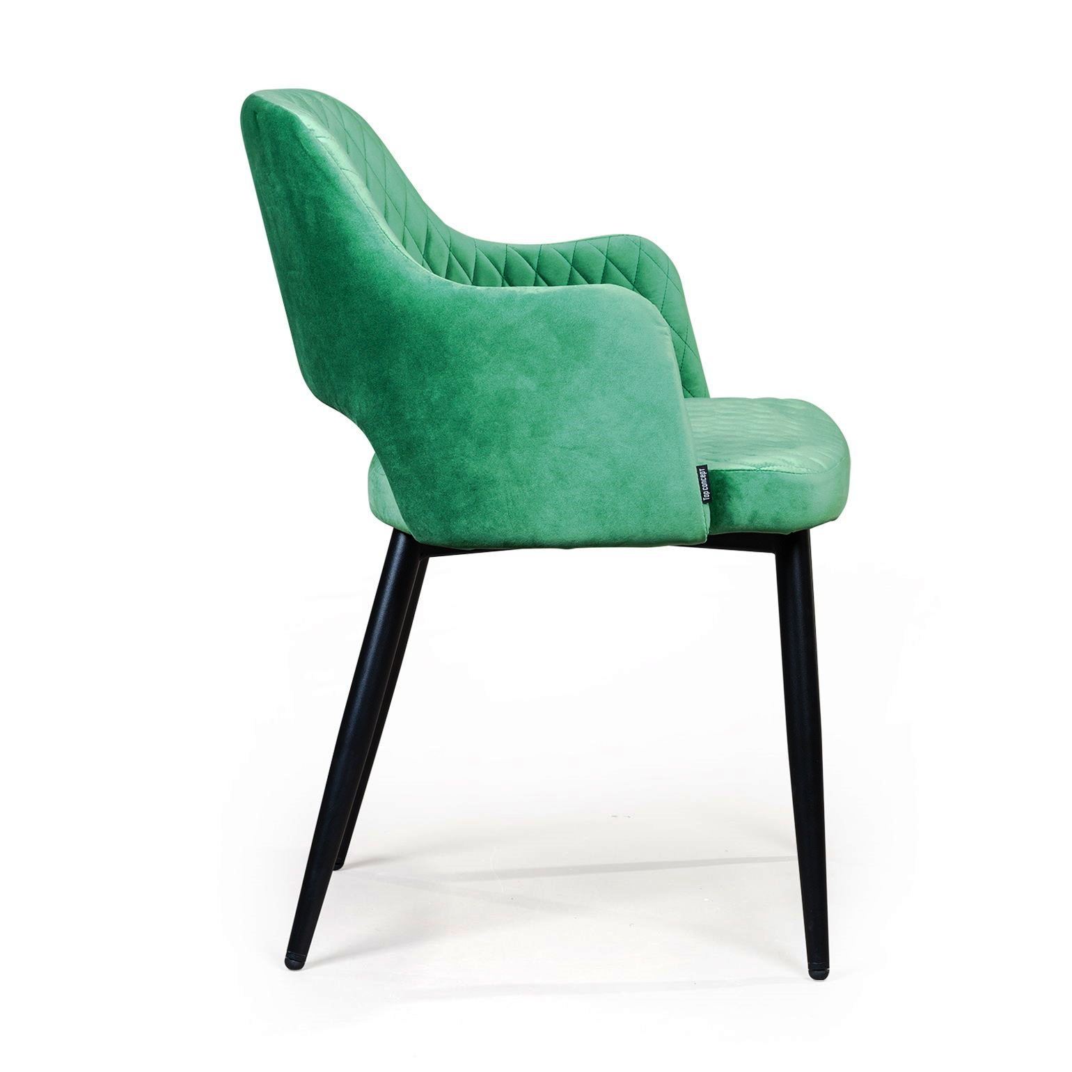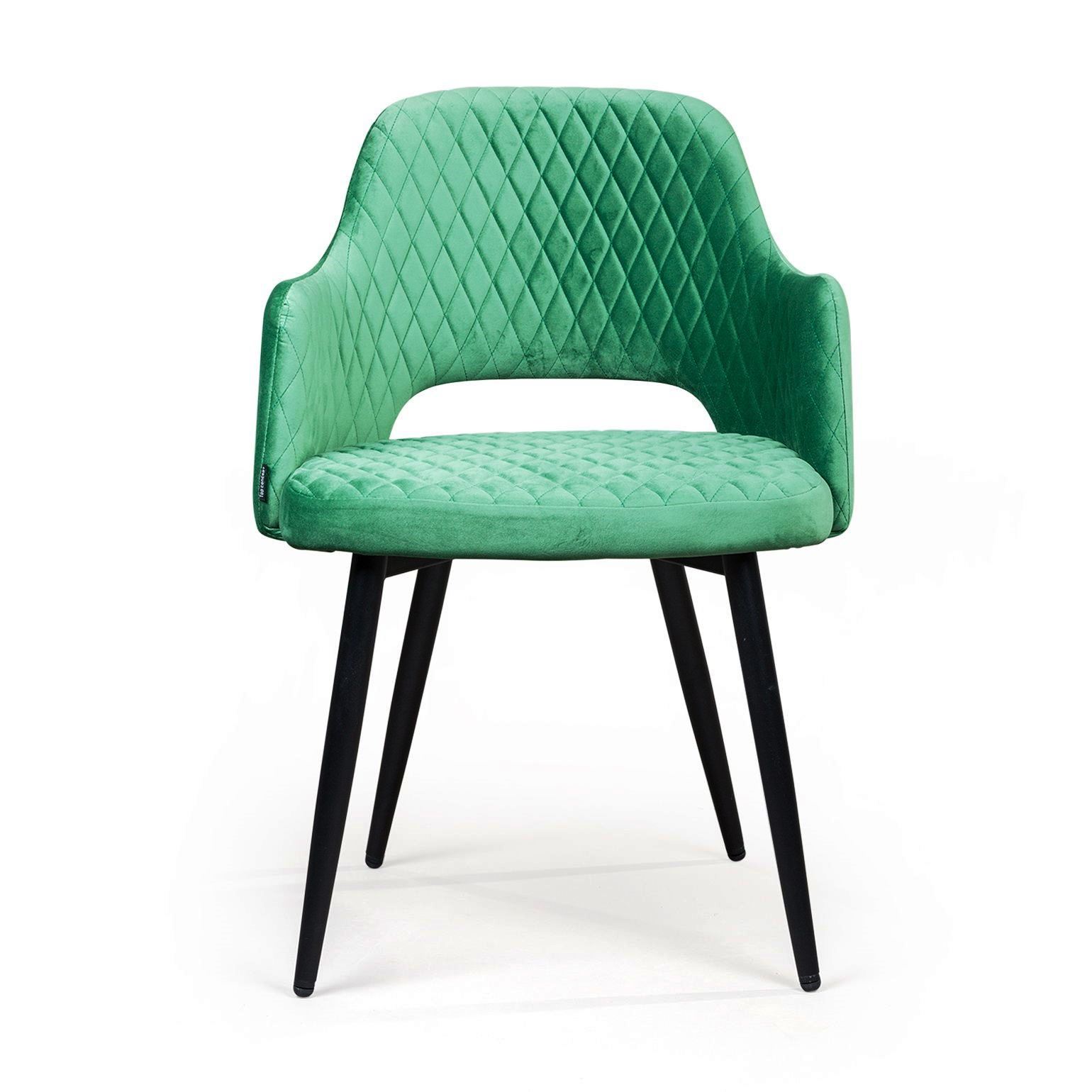 Плавные линии, изящные ножки, просторное сиденье и высокие подлокотники делают модель невероятно удобной для отдыха. Оригинальная прорезь у основания спинки добавляет конструкции легкости и воздушности. Стильная отделка ромбом на спинке и сиденье в сочетании с благородным бархатом создает неповторимые переливы и придает стулу особую утонченность.