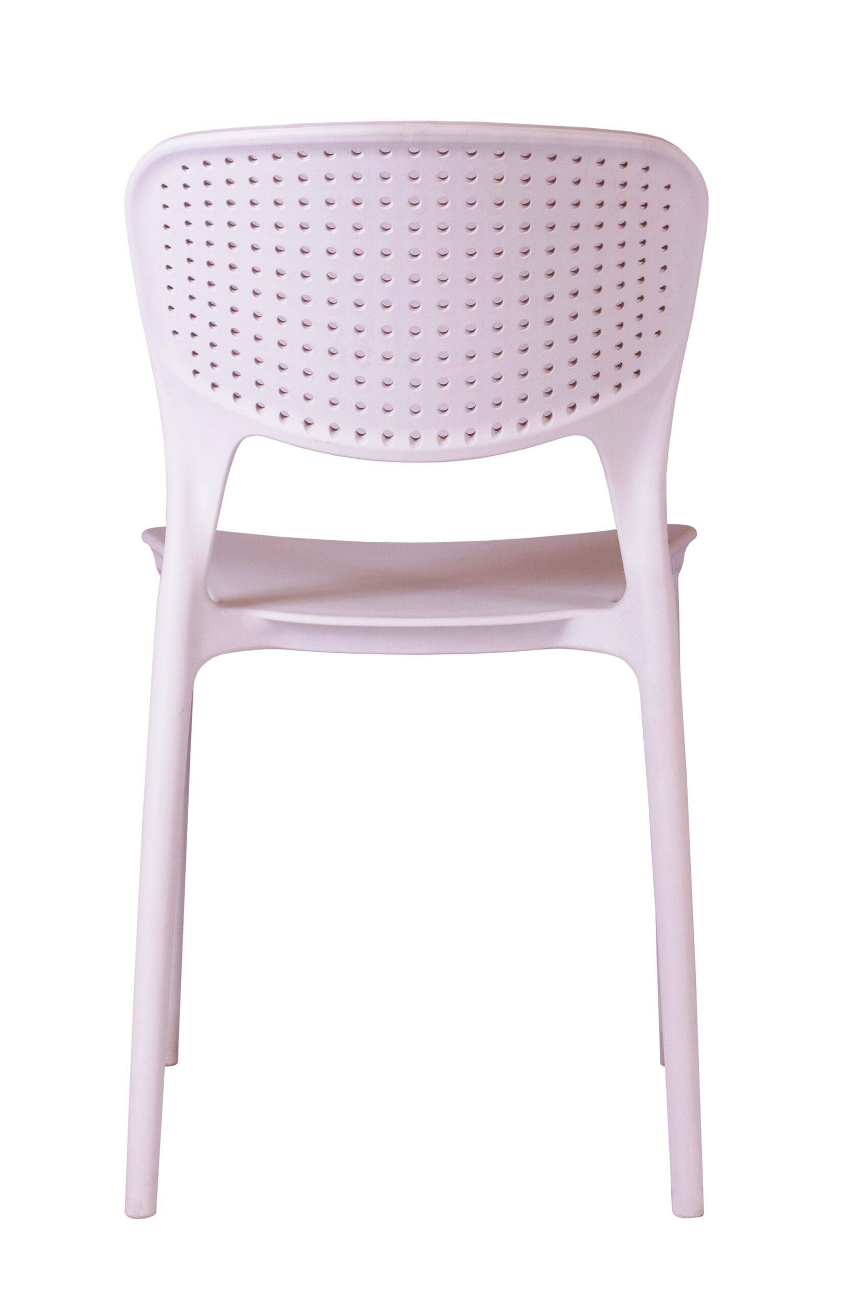 Модель стула имеет перфорированную спинку и прочный цельнолитой каркас.