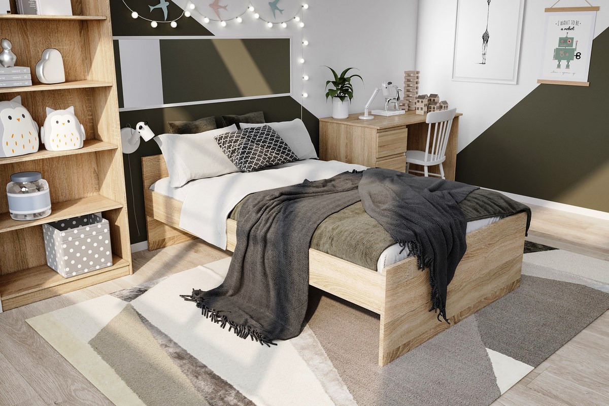 Кровать ОРИОН с ортопедическим основанием, 2054х1260х655, цвет Дуб Сонома. Спальное место 120х200. Возможна докомплектация выкатными ящиками для хранения 60х60 и 140х60. Гарантийный срок для жилых помещений 18 месяцев, для общественных помещений - 12 месяцев.