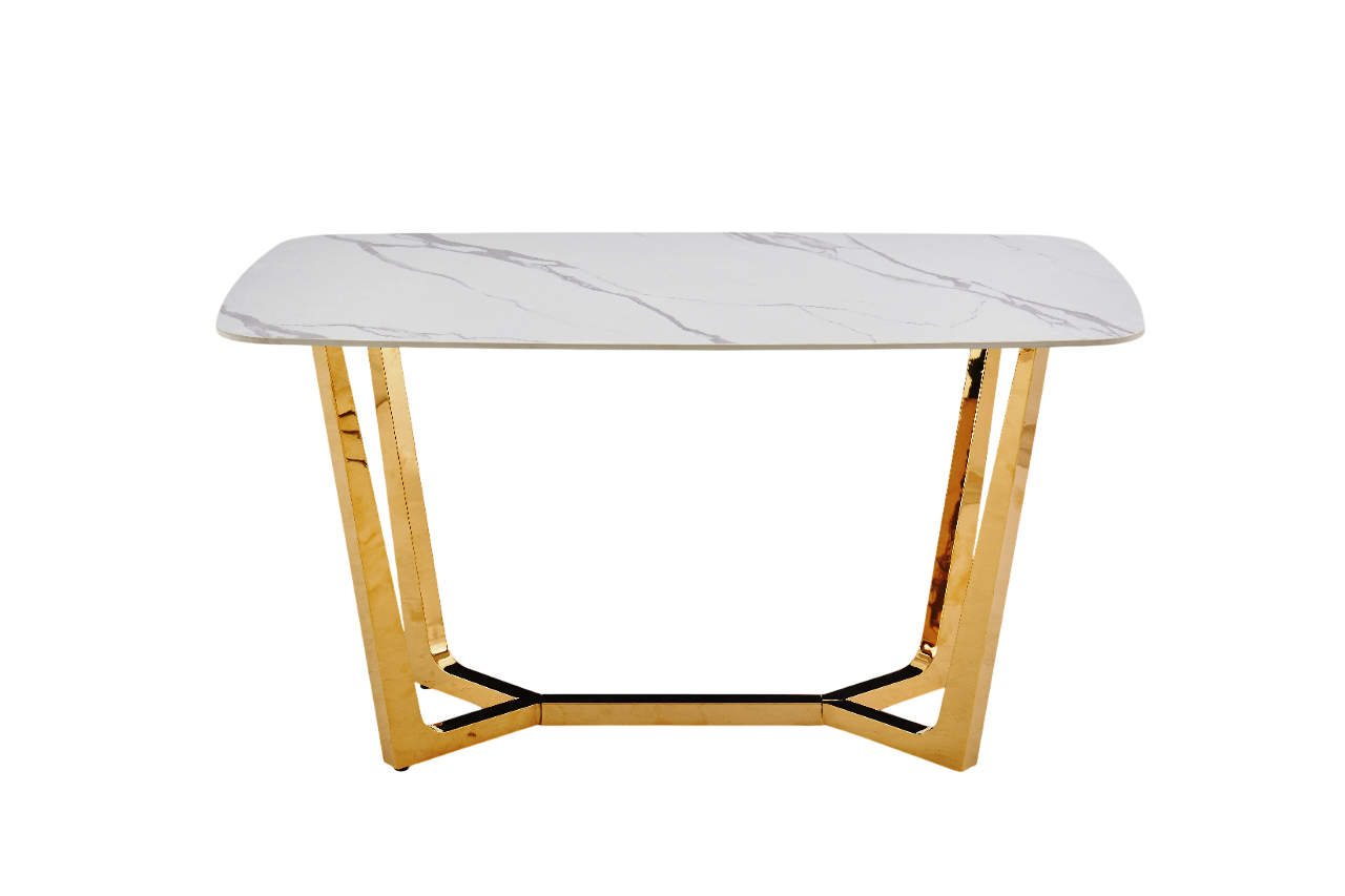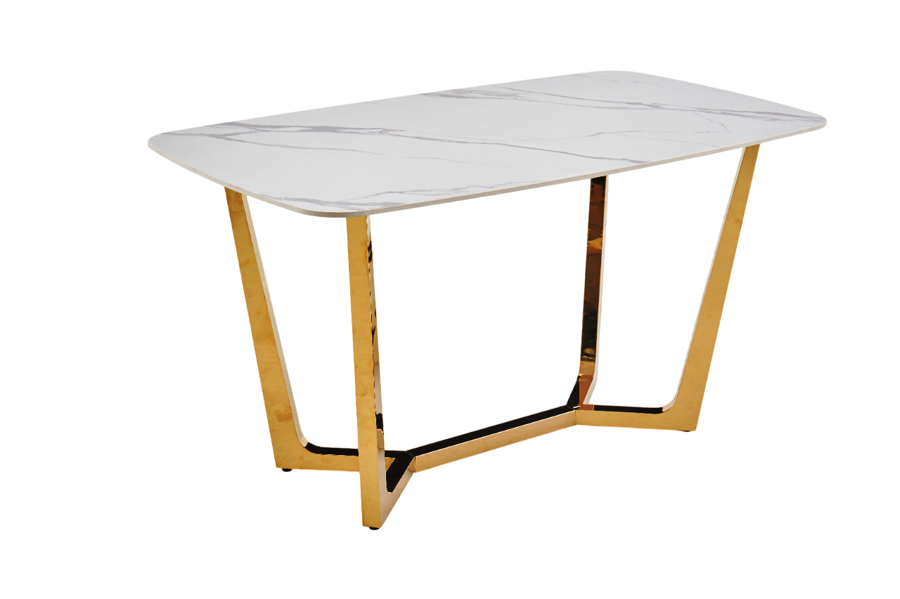 Model | Стол обеденный Ланс DT-2852XS, 120х80х75 см, белый мрамор Статуарио/глянцевое золото |