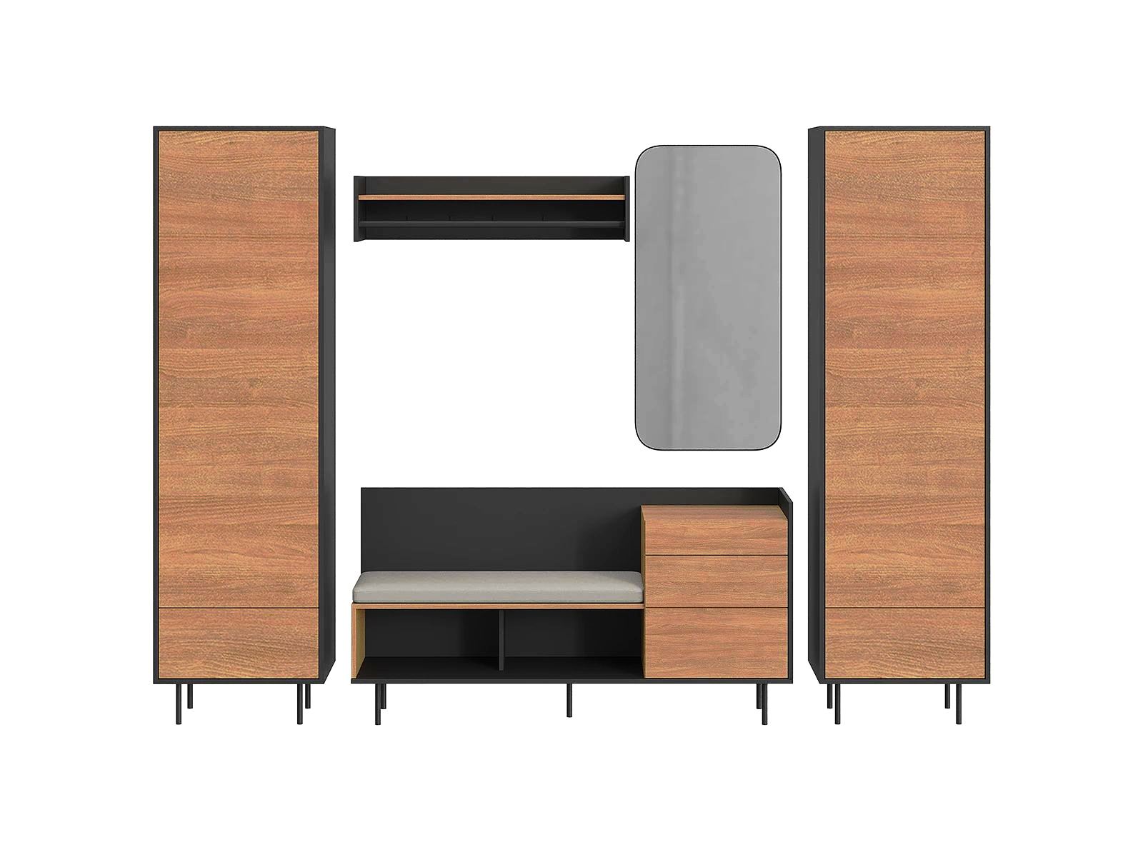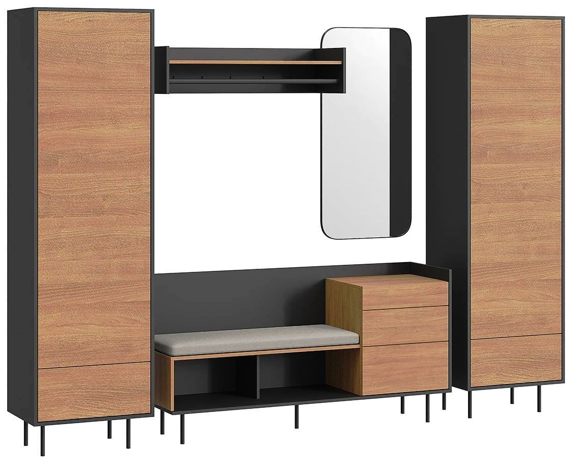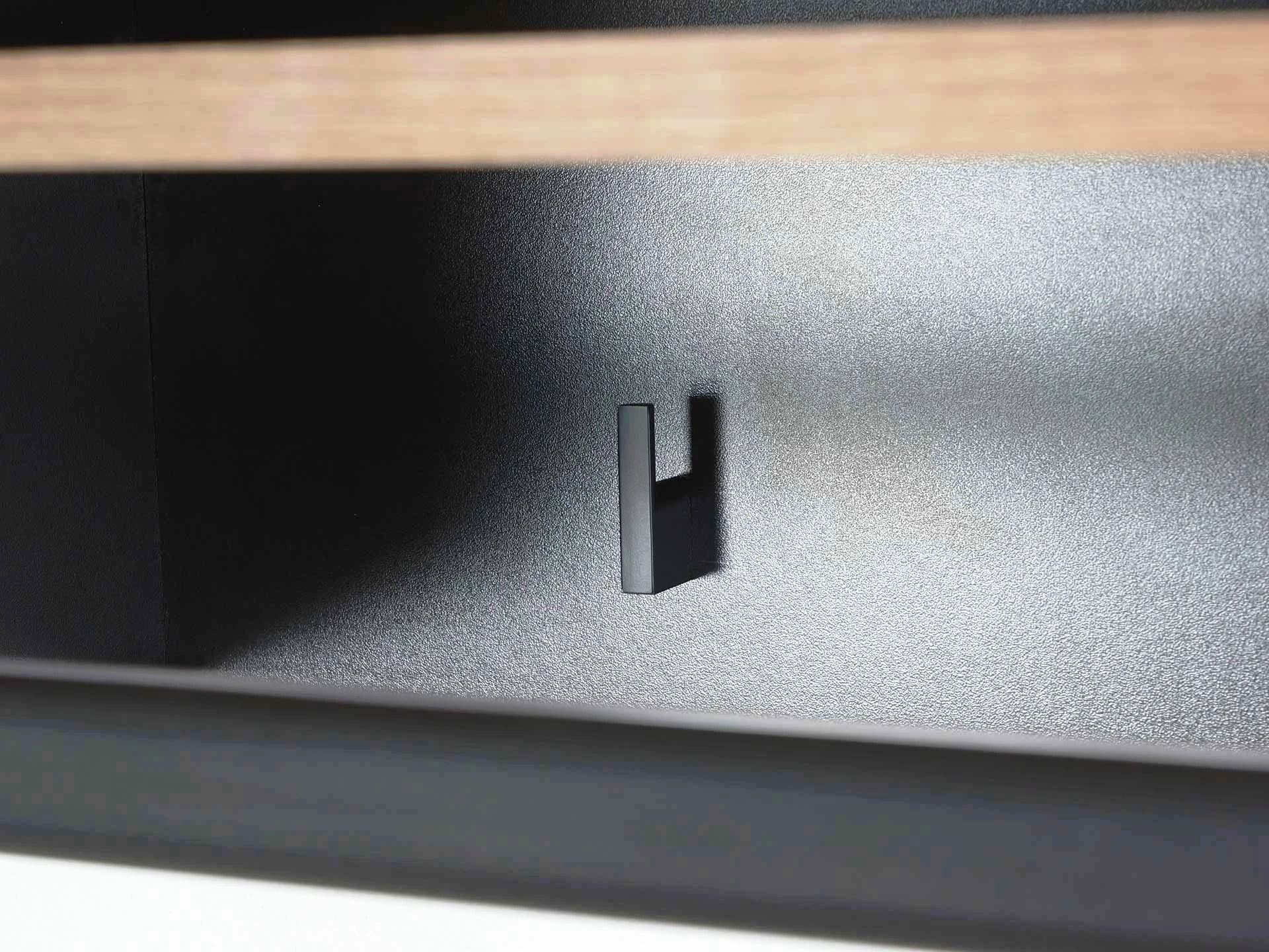 В нижней части шкафа выдвижной ящик на скрытых направляющих. Отделение за дверью укомплектовано как выдвижной штангой, которая крепится на верхнюю несъёмную полку, так и тремя съёмными полками.
