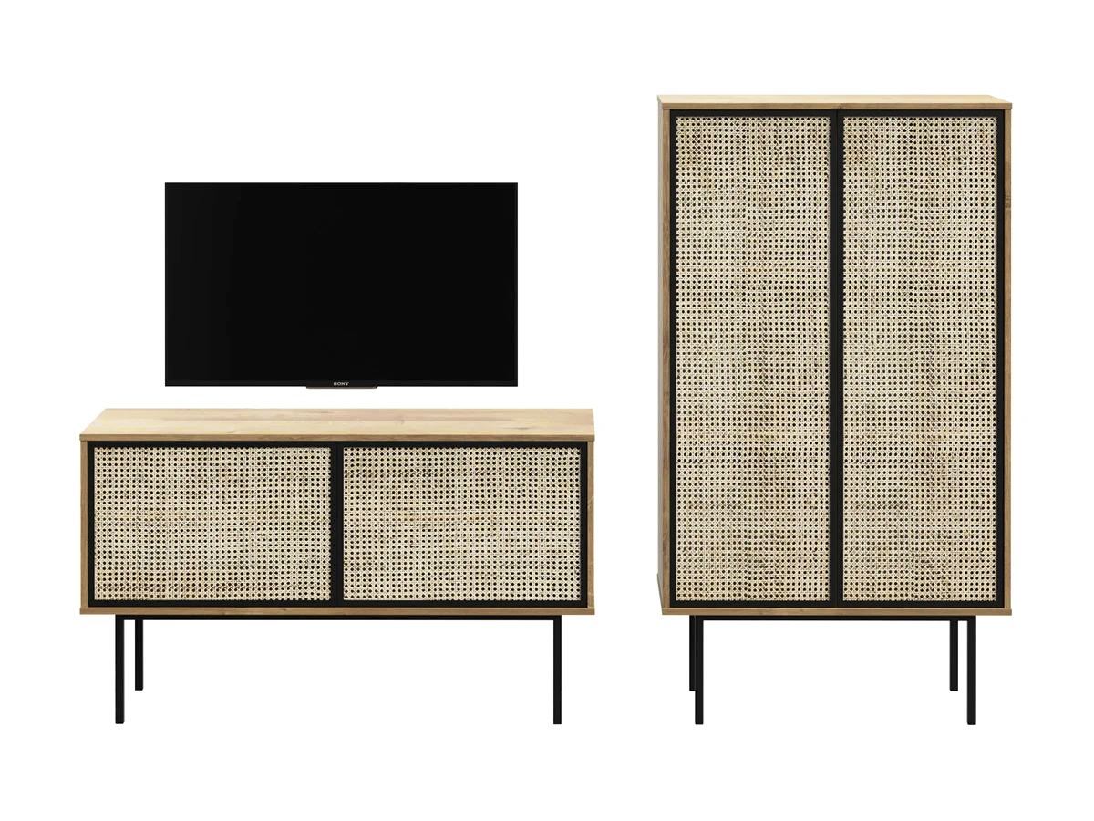 Тумба малая 2 Boho с фасадом из ротанга и двумя равными отделениями.В каждом отделении полка. Двери тумбы на газлифтах, по одной двери на отделение.