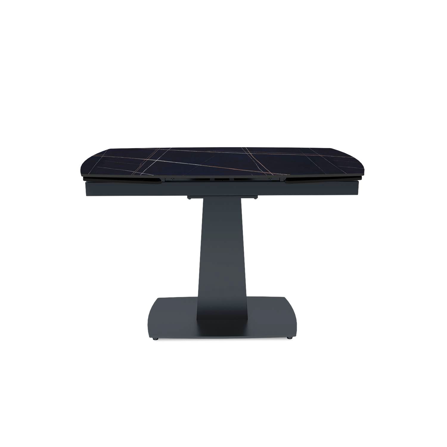 Столешница выполнена из износостойкой керамики, устойчивой к высоким температурам, влаге и царапинам. Она эффектно имитирует фактуру камня и сохраняет безупречный вид при ежедневном использовании.