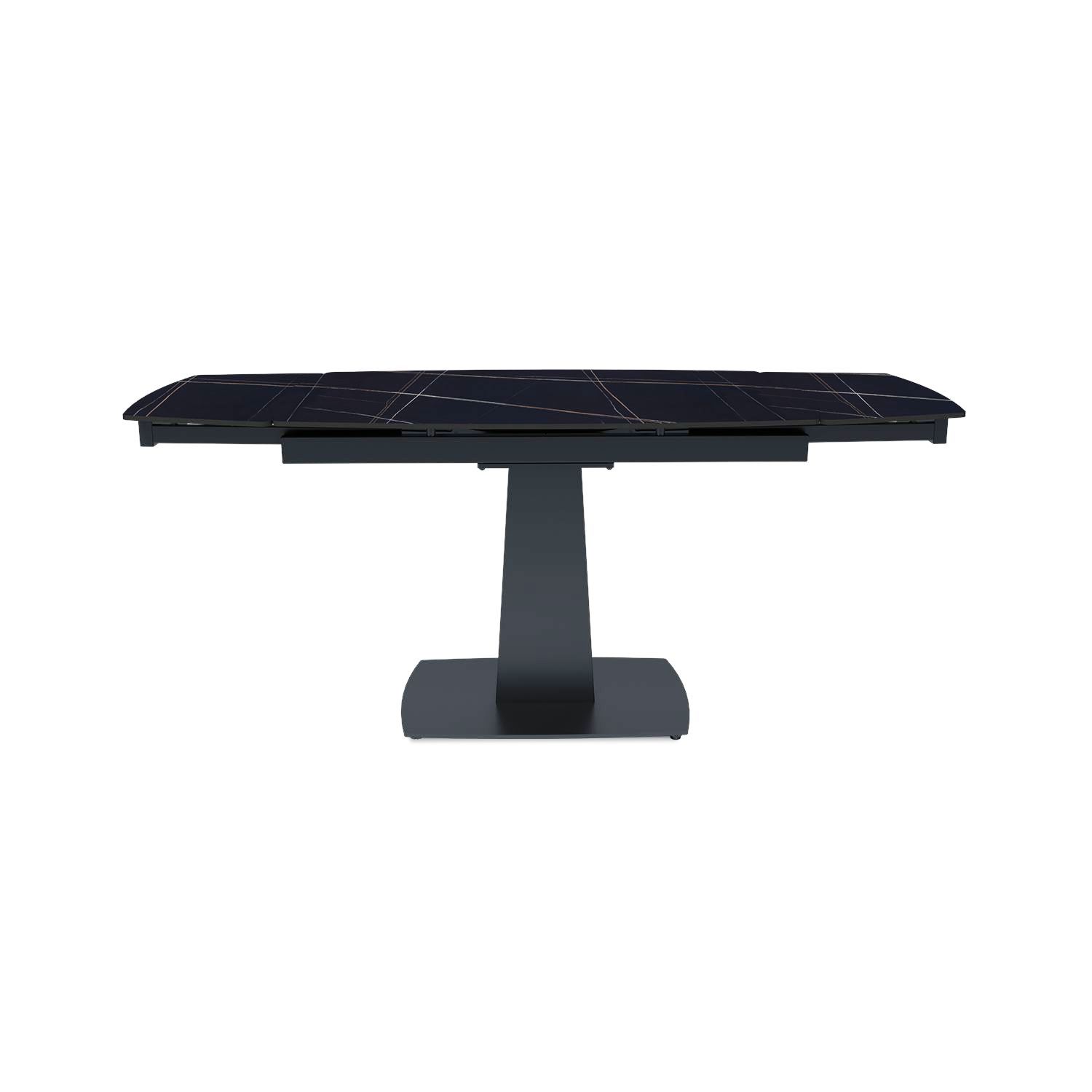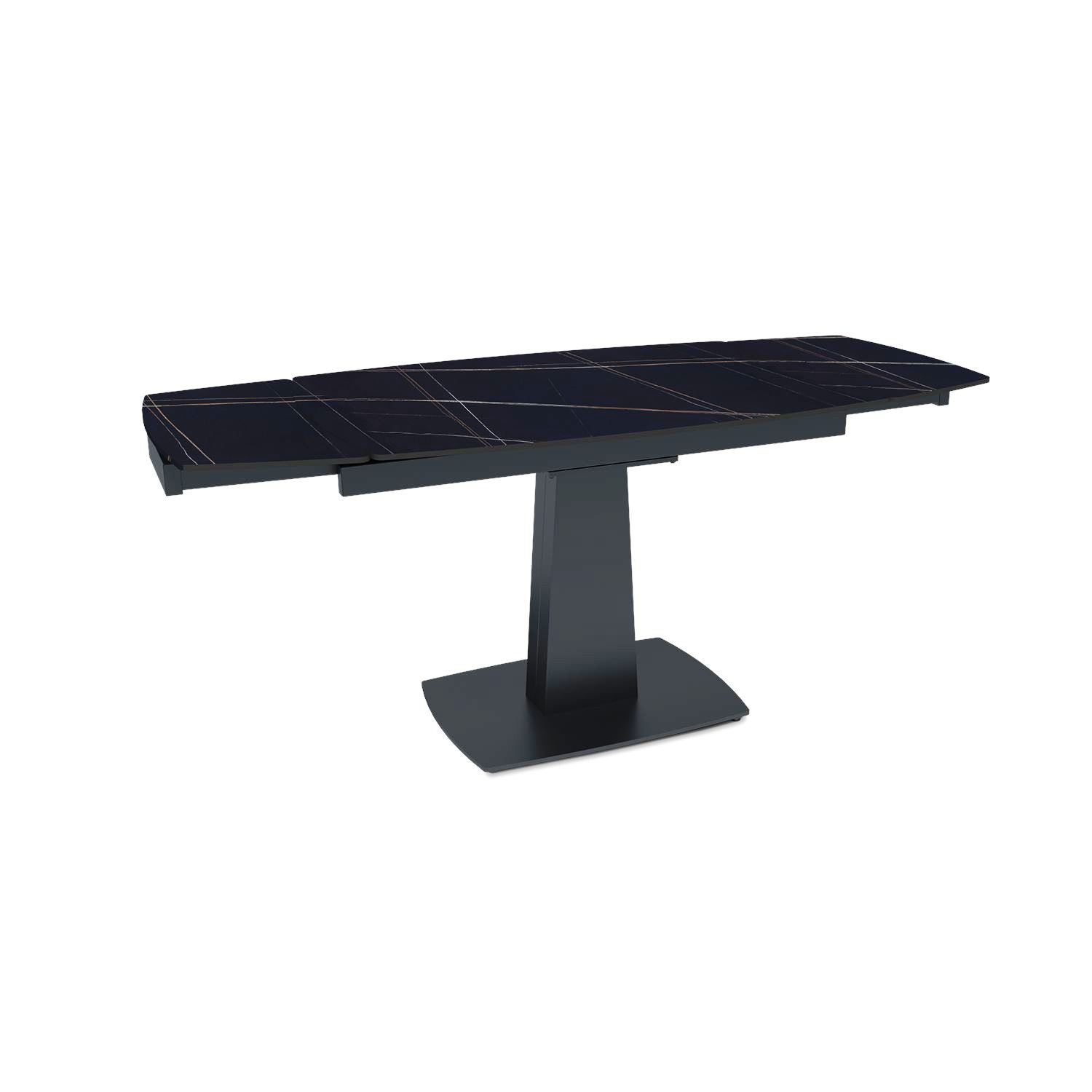 Стол «VEGA» оснащен двойным механизмом трансформации выдвижения торцевых вставок по траектории в раме собственного производства. Данный механизм позволяет увеличить размер столешницы на 60 см (по 30 см на каждую сторону) и с комфортом разместить до 8-ми человек.
