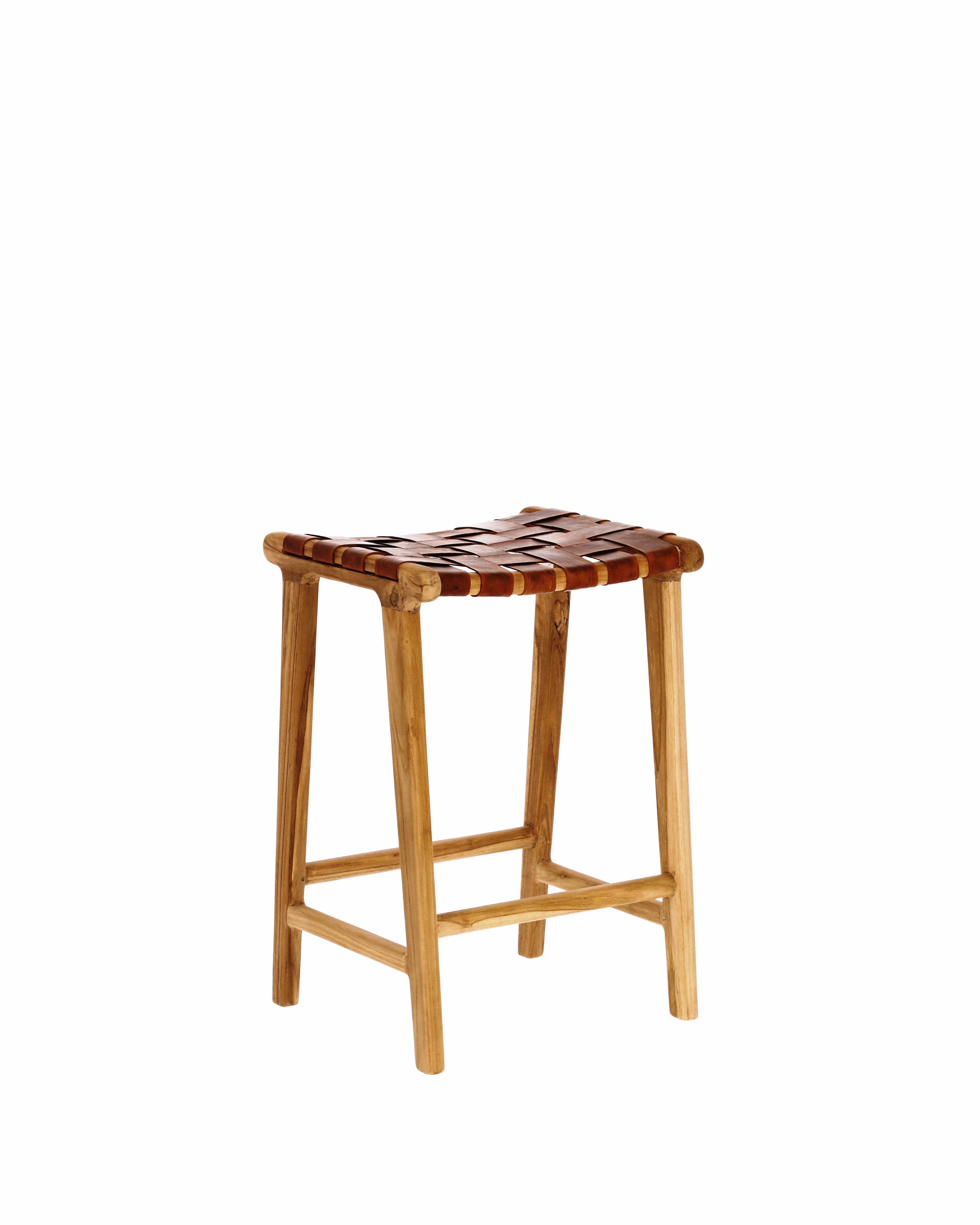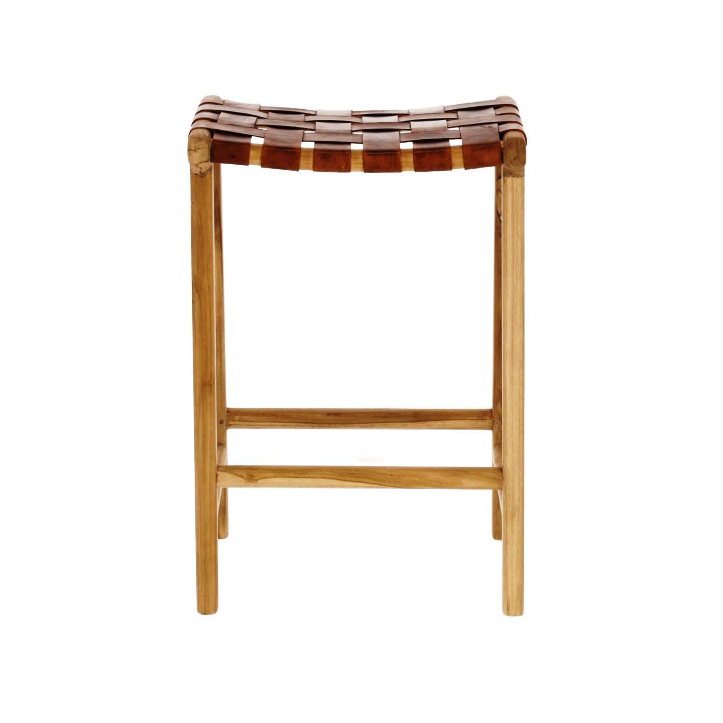 Сиденье табуретки Calixta, высота 67 см, изготовлено из коричневых кожаных ремешков с ручным плетением и идеально подходит для любого уголка вашего дома, даже рядом с американским баром. Конструкция изготовлена из цельного тикового дерева, поэтому она также является дизайнерским изделием, которое прослужит вам долго. Благодаря тому, что каждый стул имеет натуральные материалы, он имеет свои тона и текстуры, что делает каждый предмет эксклюзивным и неповторимым.