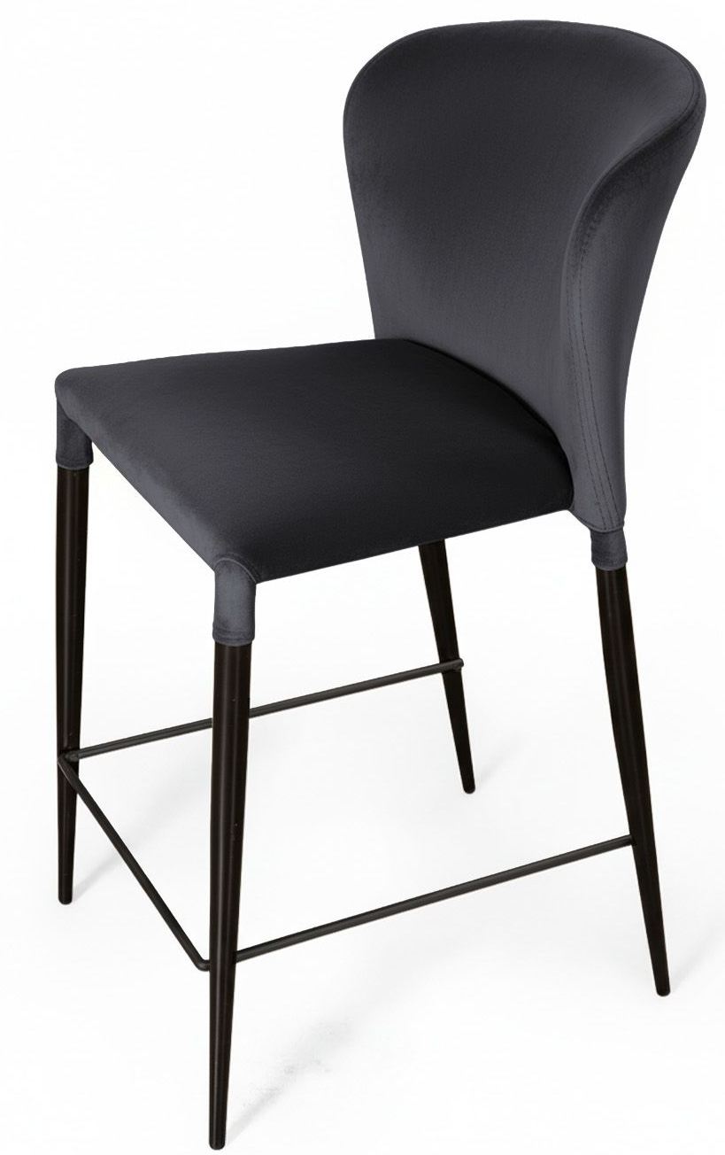 Изюминка полубарного стула Albert – невероятно тонкие металлические ножки черного матового цвета, излишне скошенные назад, как часть дизайнерской задумки. Подножка выполнена в цвет опоры. На ножках предусмотрены специальные пластиковые накладки, которые придают стулу дополнительную устойчивость и защищают пол от царапин.
