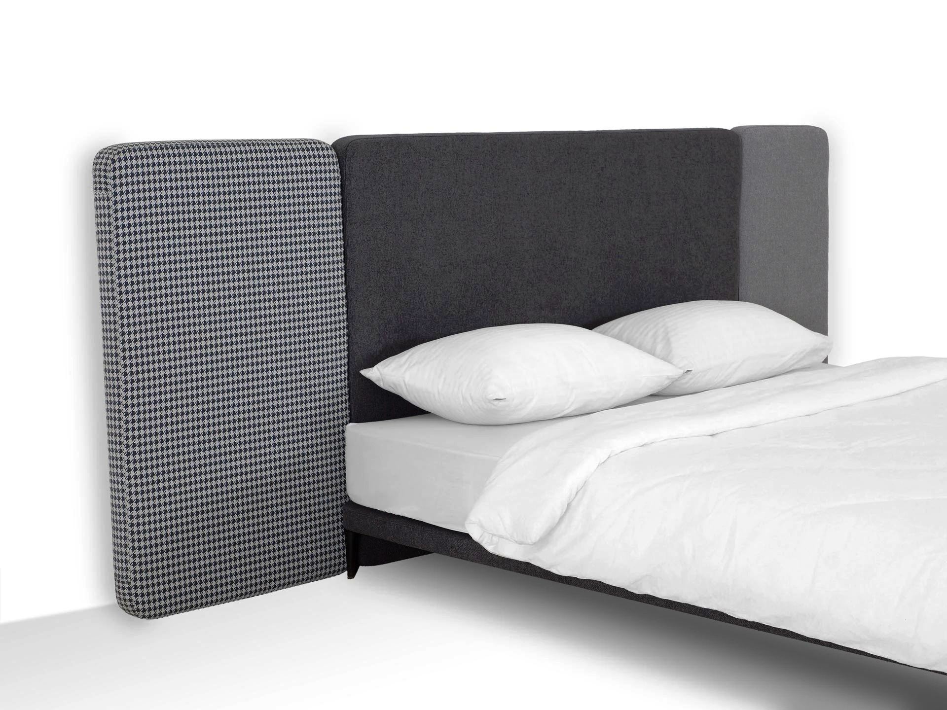 Кровать можно персонализировать при помощи навесных панелей 5 конфигураций. Имеют разную ширину и выполняются в любых цветовых сочетаниях. Крепятся к стене с помощью металлических навесов с регулировкой по высоте. Панели комбинируются по-разному и адаптируются к спальням любых размеров. Можно оформить как традиционное высокое изголовье, так и большой «мягкий уголок». Который сделает вашу территорию идеального сна уютнее, теплее, а также подарит чувство защищенности и расслабления. Кровать Licata органично впишется в пространства разной стилистики от современной классики до минимализма и поможет вам максимально насладиться домашним комфортом.