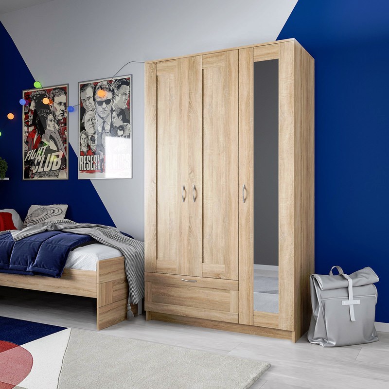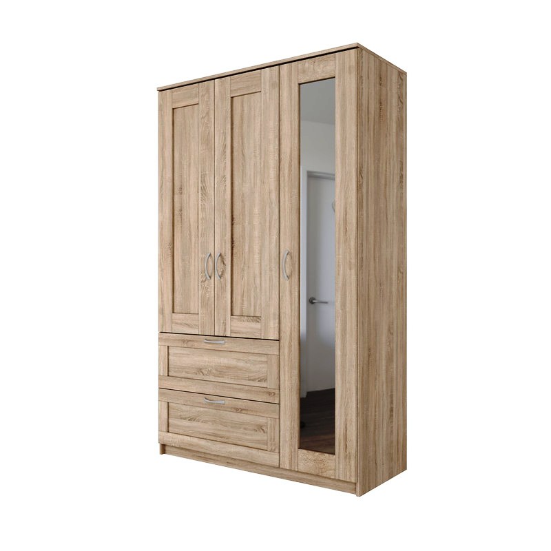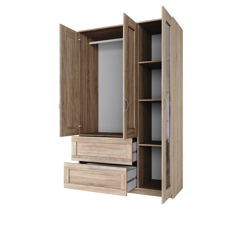 Шкаф СИРИУС комбинированный для одежды трехдверный, с двумя выдвижными ящиками, 1171х502х1900, цвет Дуб Сонома. Изготовлен из кашированного ДСП толщиной 16 мм. Крепится к стене. Гарантийный срок для жилых помещений 24 месяца, для общественных помещений - 18 месяцев.