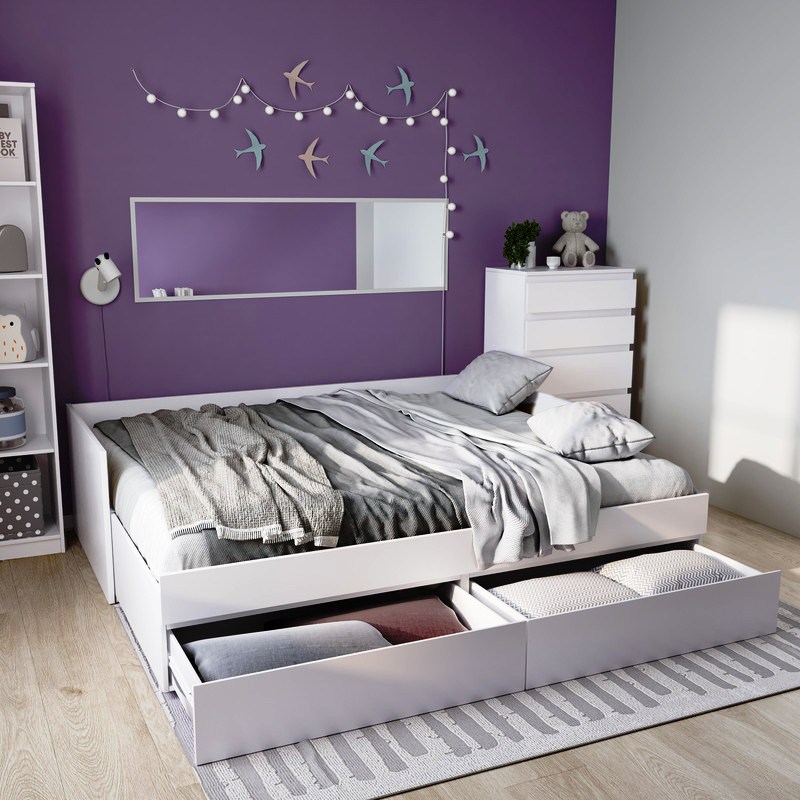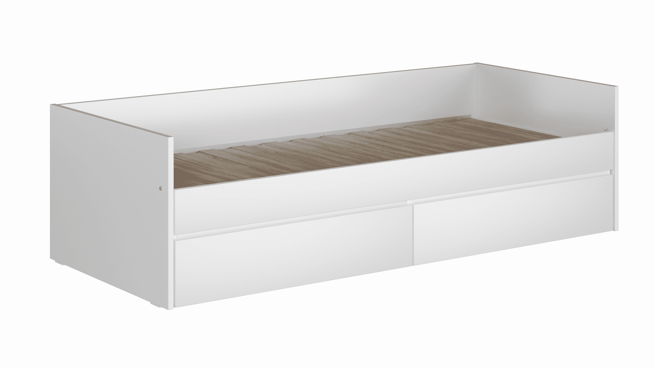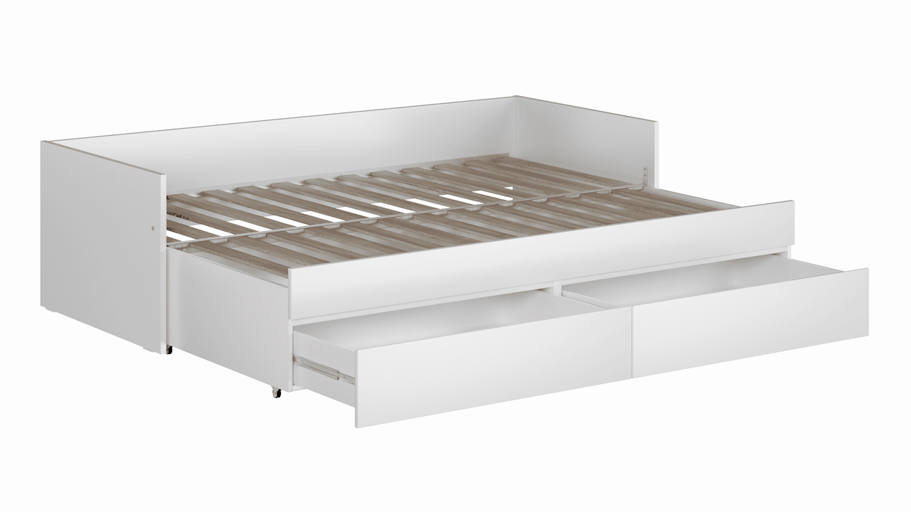 Кровать КАСТОР двухспальная раздвижная с двумя выдвижными ящиками для хранения, с ортопедическим основанием Лурой, 2044х870х575, цвет Белый. Спальное место 80/160х200. Изготовлена из кашированного ДСП. Гарантийный срок для жилых помещений 18 месяцев, для общественных помещений - 12 месяцев.