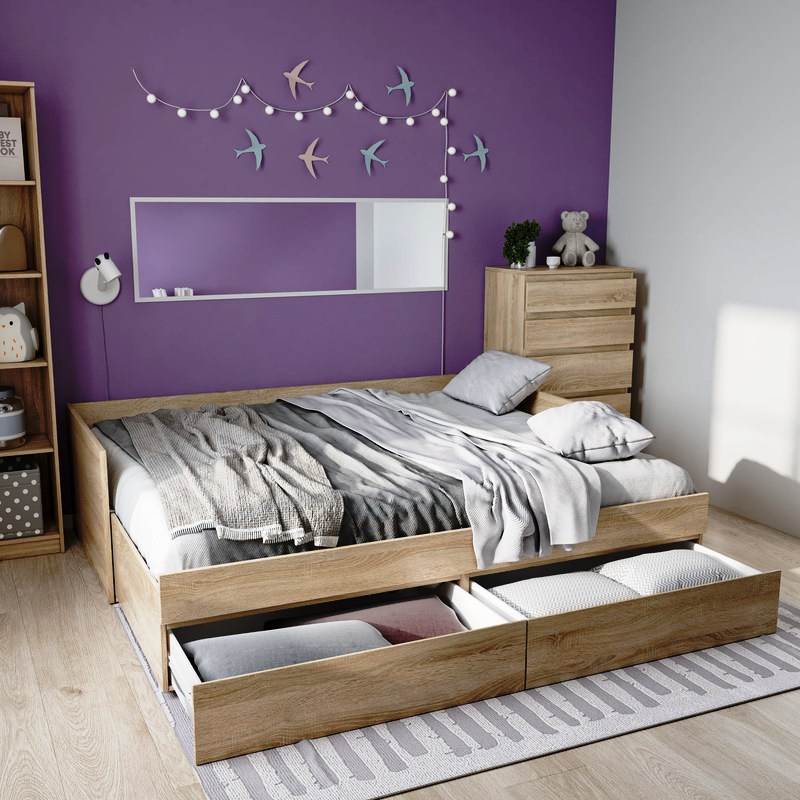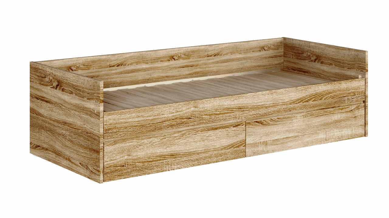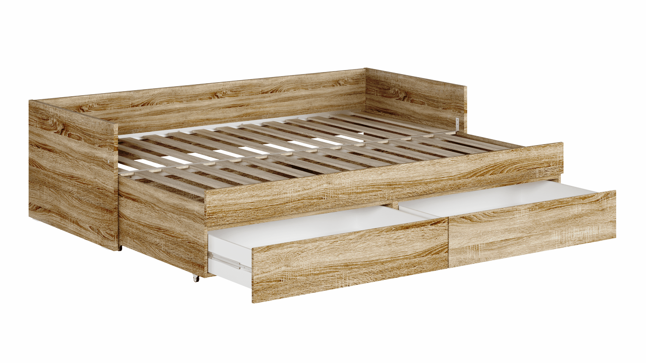 Кровать КАСТОР двухспальная раздвижная с двумя выдвижными ящиками для хранения, с ортопедическим основанием Лурой, 2044х870х575, цвет Дуб Сонома. Спальное место 80/160х200. Изготовлена из кашированного ДСП. Гарантийный срок для жилых помещений 18 месяцев, для общественных помещений - 12 месяцев.