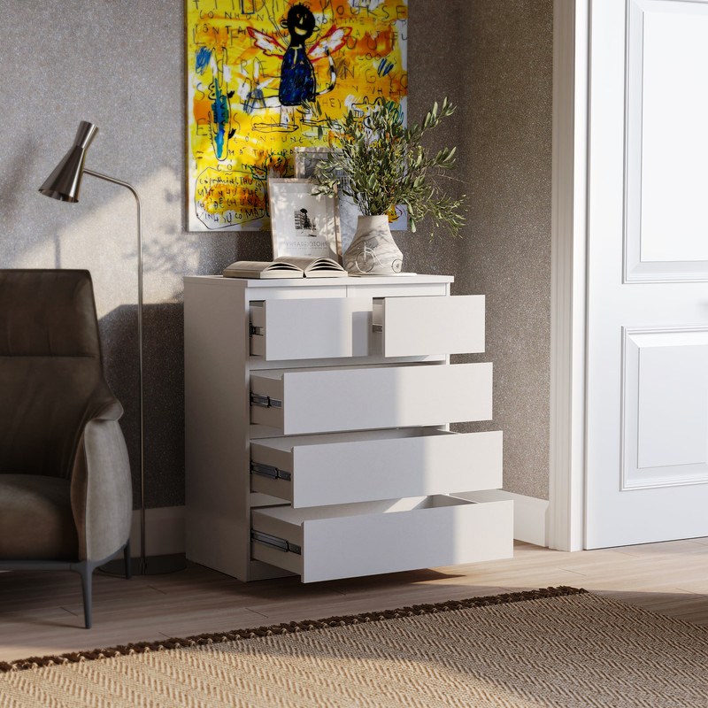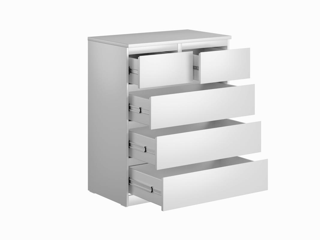 Комод МАЛЬТА с пятью выдвижными ящиками, 803х480х988, цвет Белый. Крепится к стене. Гарантийный срок для жилых помещений 24 месяца, для общественных помещений - 18 месяцев.