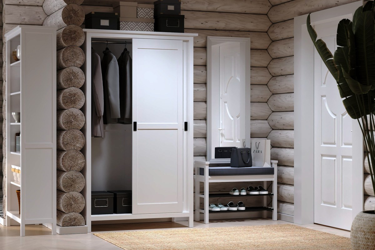 Шкаф 20 SW Кантри, 1200х590х1970, цвет Белый. Шкаф с двумя отделениями, в левом штанга для плечиков, в правом сверху штанга, снизу две пеерставные полки для одежды. Шкаф "Кантри" предназначен для тех, кто любит простоту и минимализм. Он понравится всем поклонникам скандинавского стиля. Изготовлен из массива хвойных пород. Крепится к стене. Мебель для жилых помещений. Гарантийный срок 24 месяца.