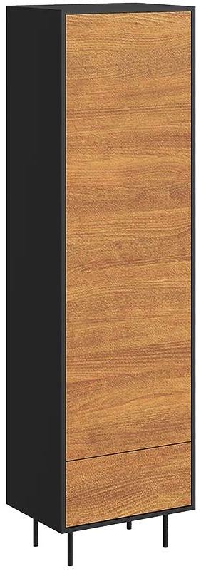 В нижней части шкафа выдвижной ящик на скрытых направляющих. Отделение за дверью укомплектовано как выдвижной штангой, которая крепится на верхнюю несъёмную полку, так и тремя съёмными полками.