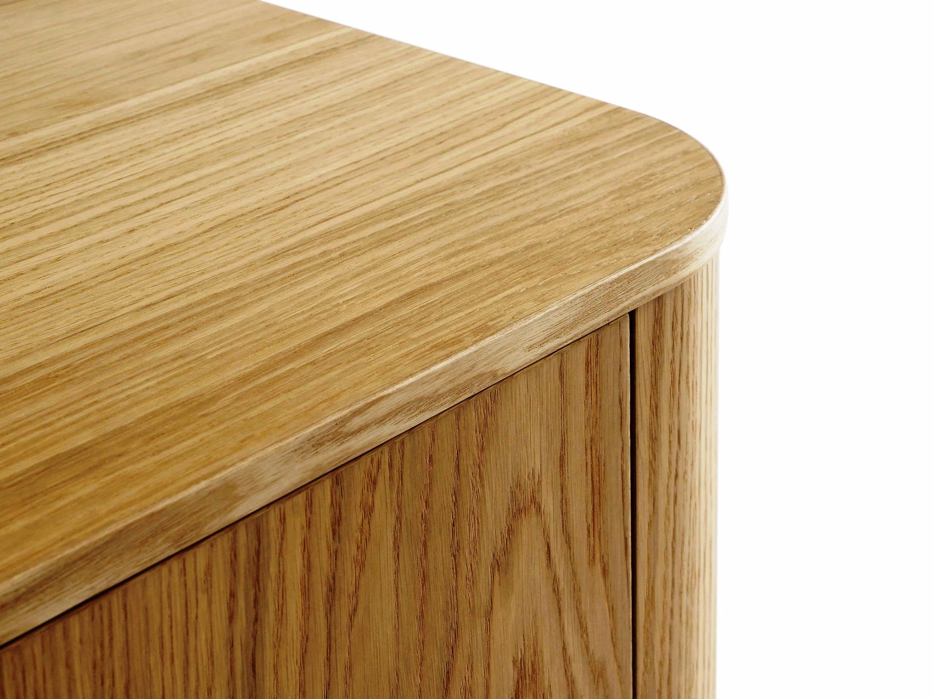 Материал корпуса: МДФ 8 мм. и 17 мм. облицованная натуральным шпоном дуба (крышка, задняя стенка, опора, фасады, боковые элементы) и МДФ 16 мм. ЛДСтП 16 мм, ДВПО 3,2 мм (детали ящиков).