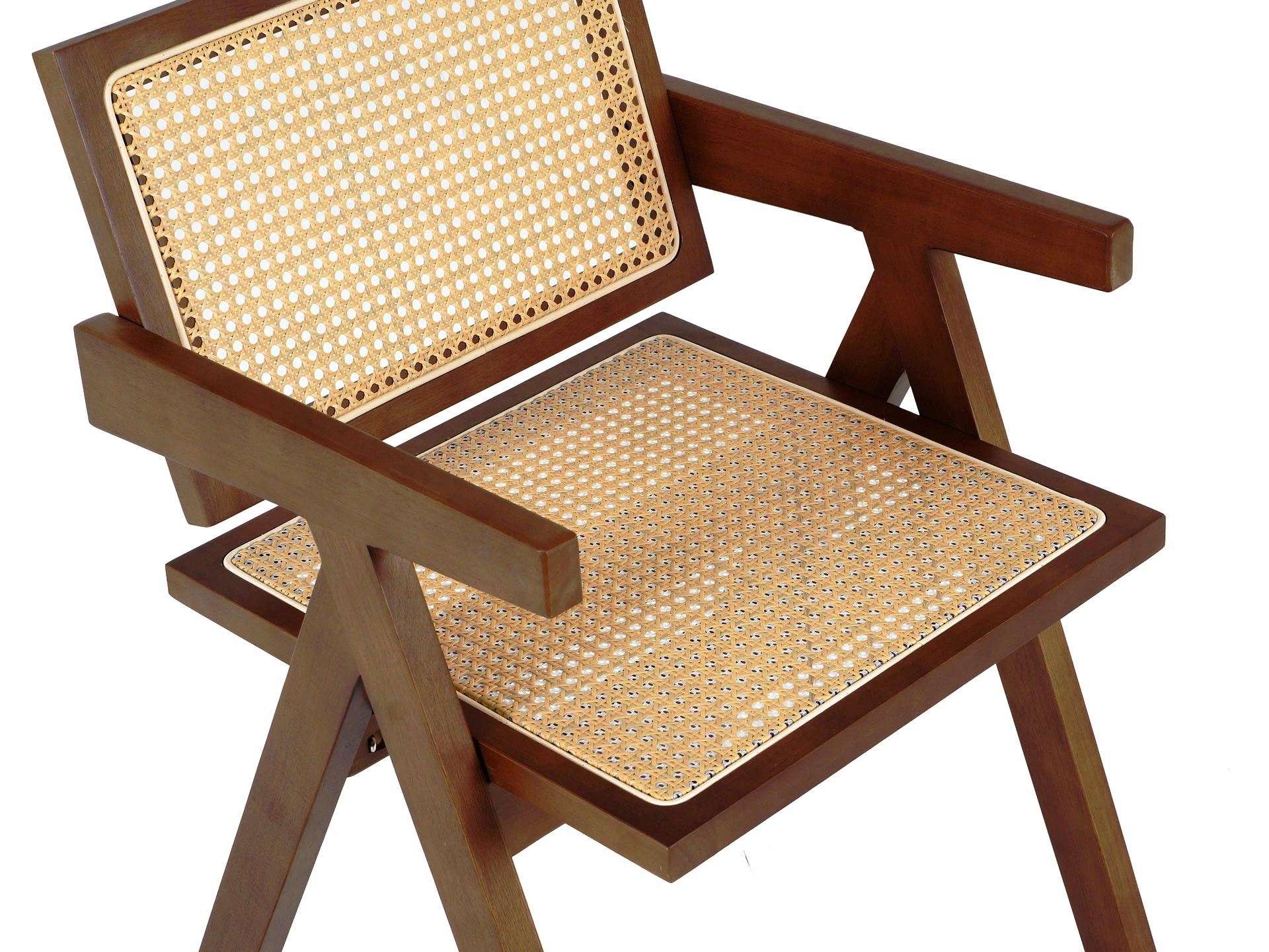 Материал каркаса и ножек - массив гeвеи, материал сиденья и спинки - искусственный ротанг.