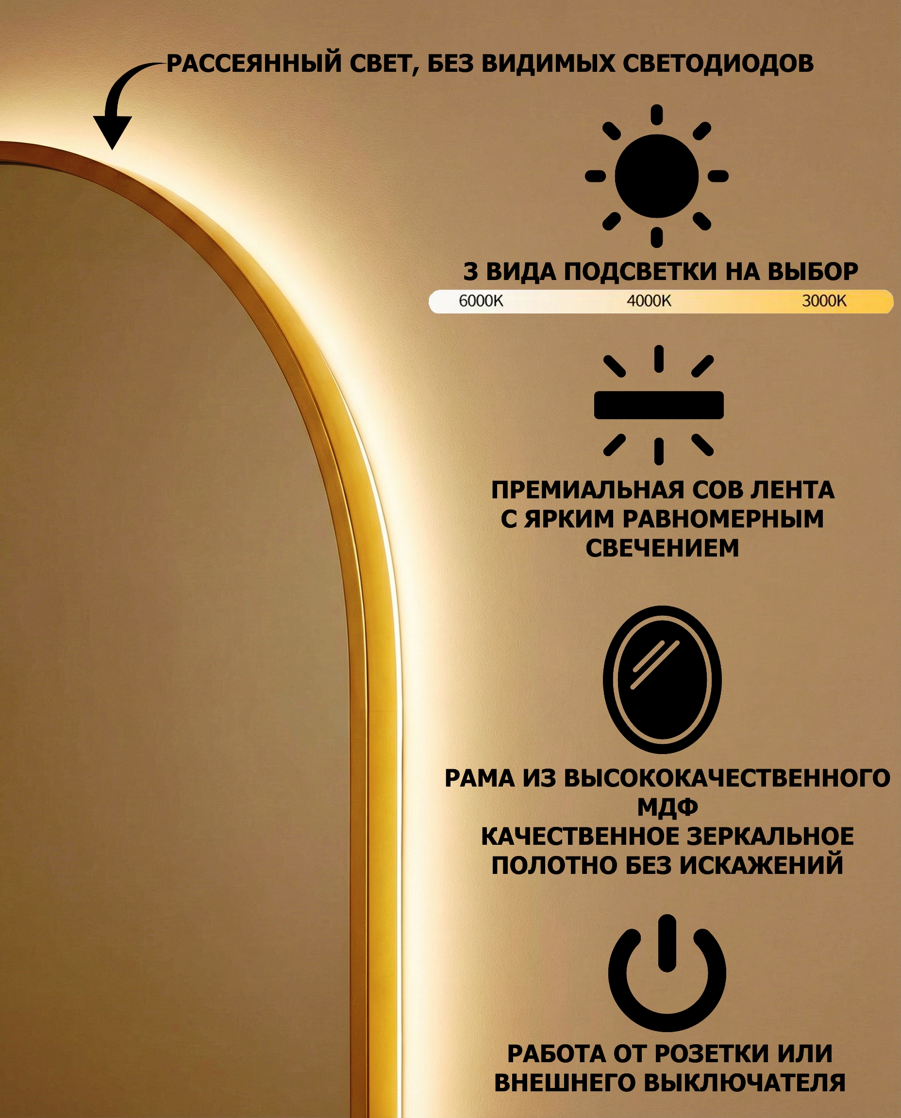 Зеркало настенное фигурное. Цвет золото